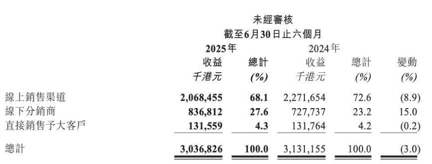 今年上半年蓝月亮线上销售20.7亿元较2024年上半年的22.7亿元下滑8.9%。非常巧合的是,今年上半年推广开支为9.96亿元较2024年上半年的10.95亿元减少9%。