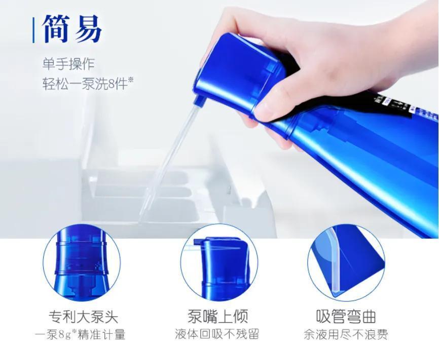 尤其是,蓝月亮多次宣传其至尊型瓶身专利设计,泵头一泵8g精准计量,泵嘴上倾液体回收不残留。这些外观型的设计和专利,刻意表现出来就显得很自嗨。
